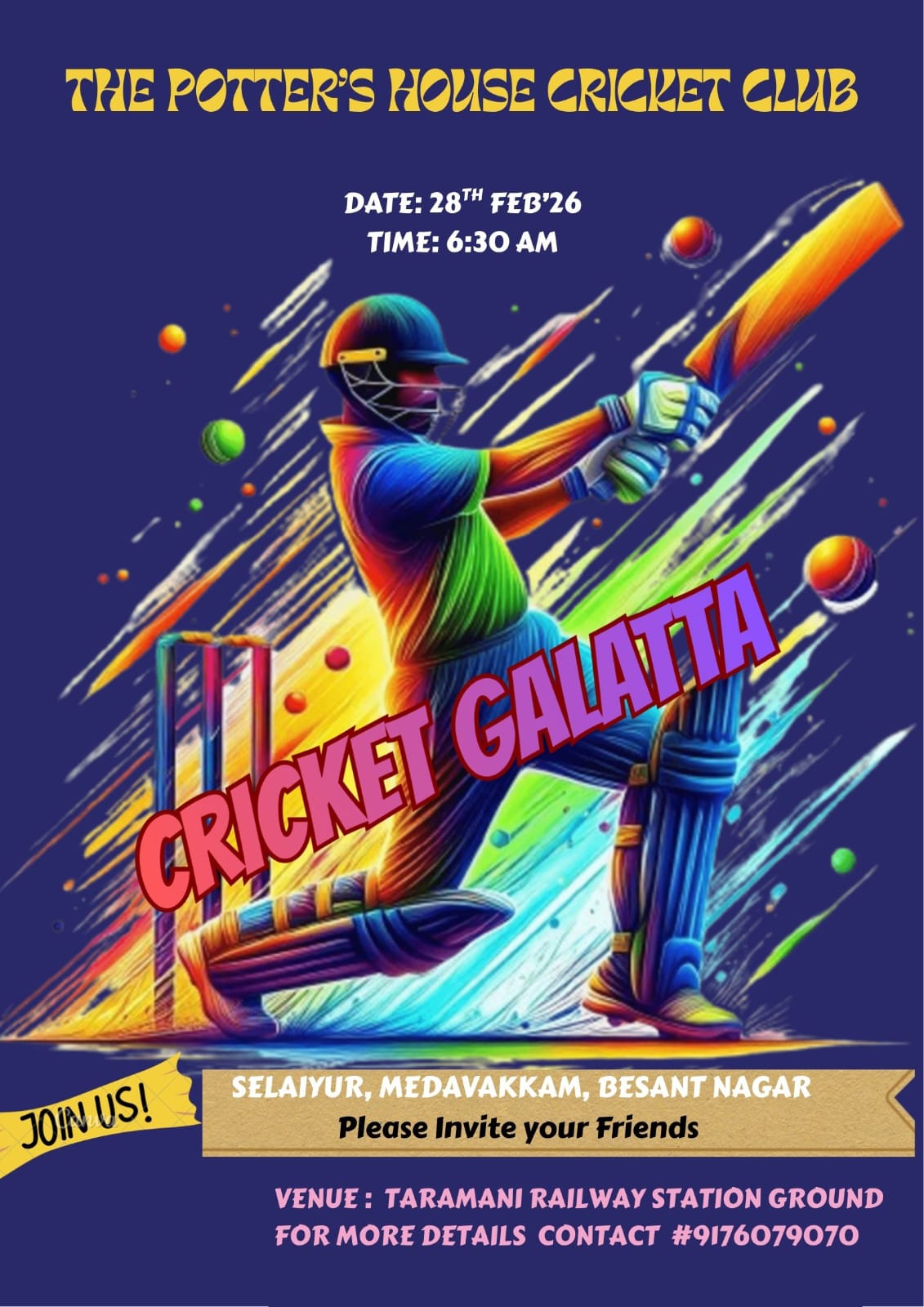 Join us for a game of CRICKET and fellowship.